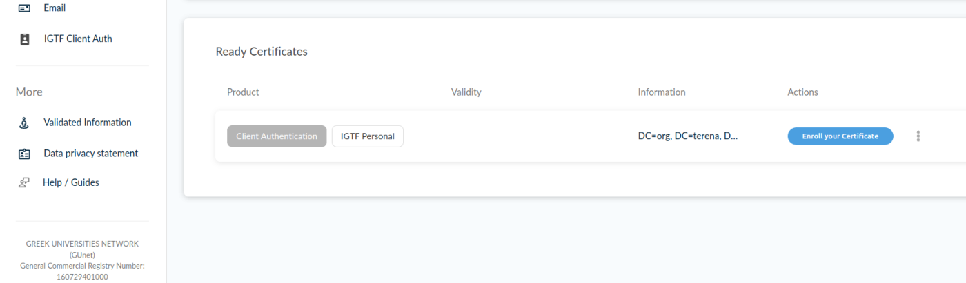 1. Go to https://cm.harica.gr/; 2. Choose "Academic Login"; 3. Choose your institution, and login; 4. Request an "IGTF Client Auth" and choose "GEANT Personal Authentication"; 5. Enroll your certificate using RSA - 4096 to generate it and give a password to secure the P12 file that contains the certificate. Agree on the policy and "Enroll Certificate"; 6. This last step will show a pop-up that allows the download of your certificate in a P12 file; 7. You can now upload the certificate on you browser.