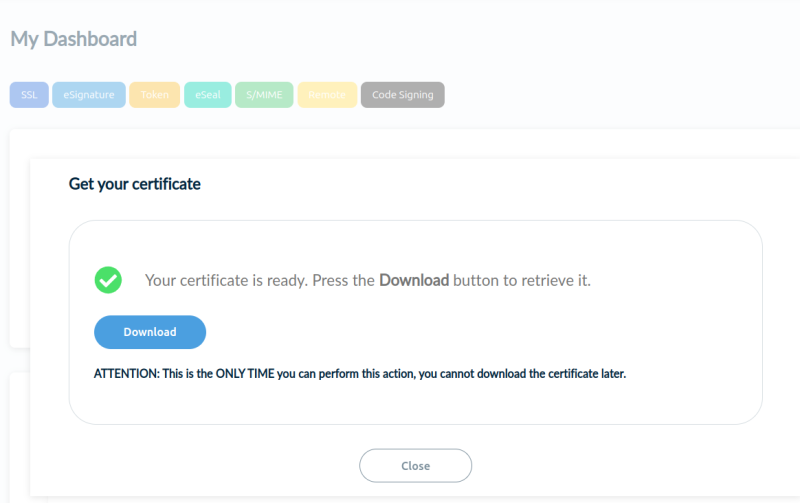 If you are familiar with the certificates request procedure and you are confident, follow these steps, otherwise go to section More extensive documentation: